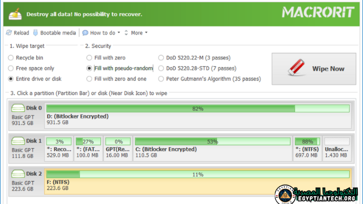 • يمكنك حمل البرنامج في نسخته المحمولة معك على فلاشة ومسح أي قرص صلب في أي مكان على جهاز الكمبيوتر الخاص بك على الفور.