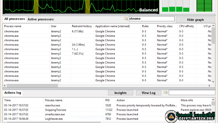 مميزات برنامج Process Lasso Pro لزيادة كفاءة وسرعة المعالج: